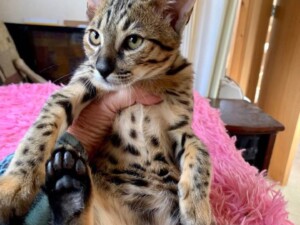 - Pure African Serval Bloodlines – All queens are full serval-derived on the male side and selected for traits that preserve those wild genetics in their offspring.