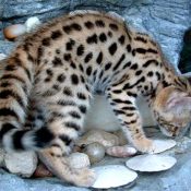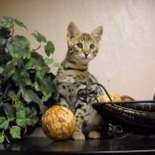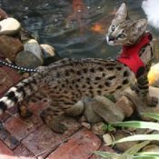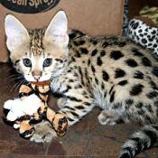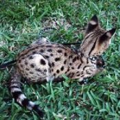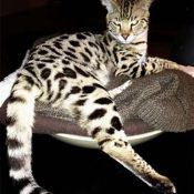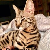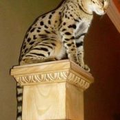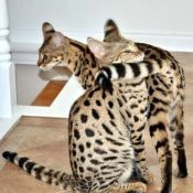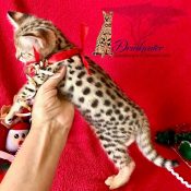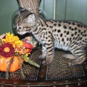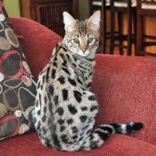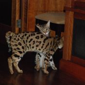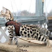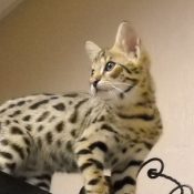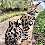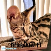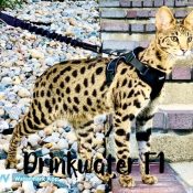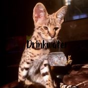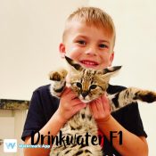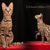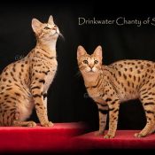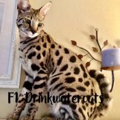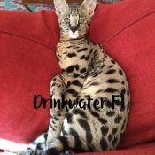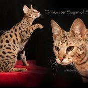Doreen Boileau of Drinkwater Cats bred F1 Savannahs since the early 90’s. Doreen is the designer of the club logo seen all over the world. Drinkwater Cats is producing F1 Savannahs year round, with the African Serval look.