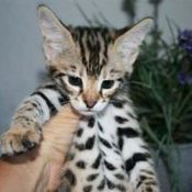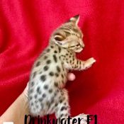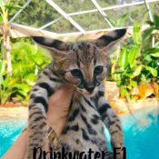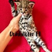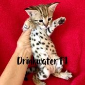 F1 Litters from Florida Cattery breeding year around and Specializing in the F1 Savannah generation! TICA registered F1 Savannah cubs! Doreen Boileau breeder/owner Call for information to reserve an F1 cub! 727-687-4026 Follow me on Facebook under Drinkwater Cats for up-dates and pictures/video!  I have Serval looking F1 Males and Females registered with TICA with dog-like personality.