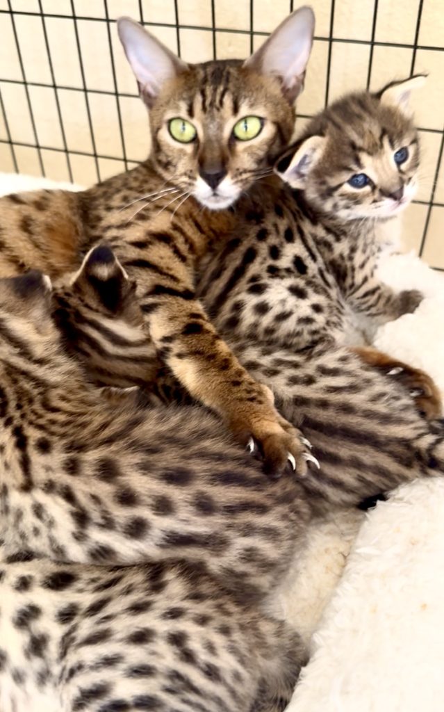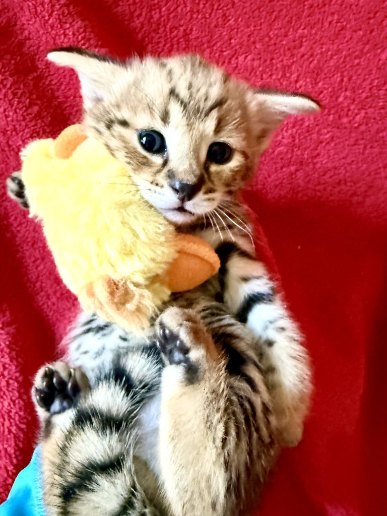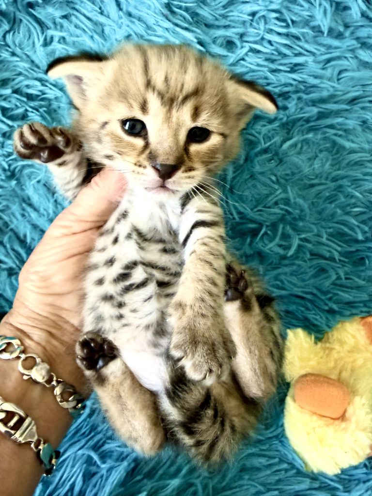 Newborn F1 litter – ready to go in January-Feb 2024 – of serval gold black noses – both males and females available